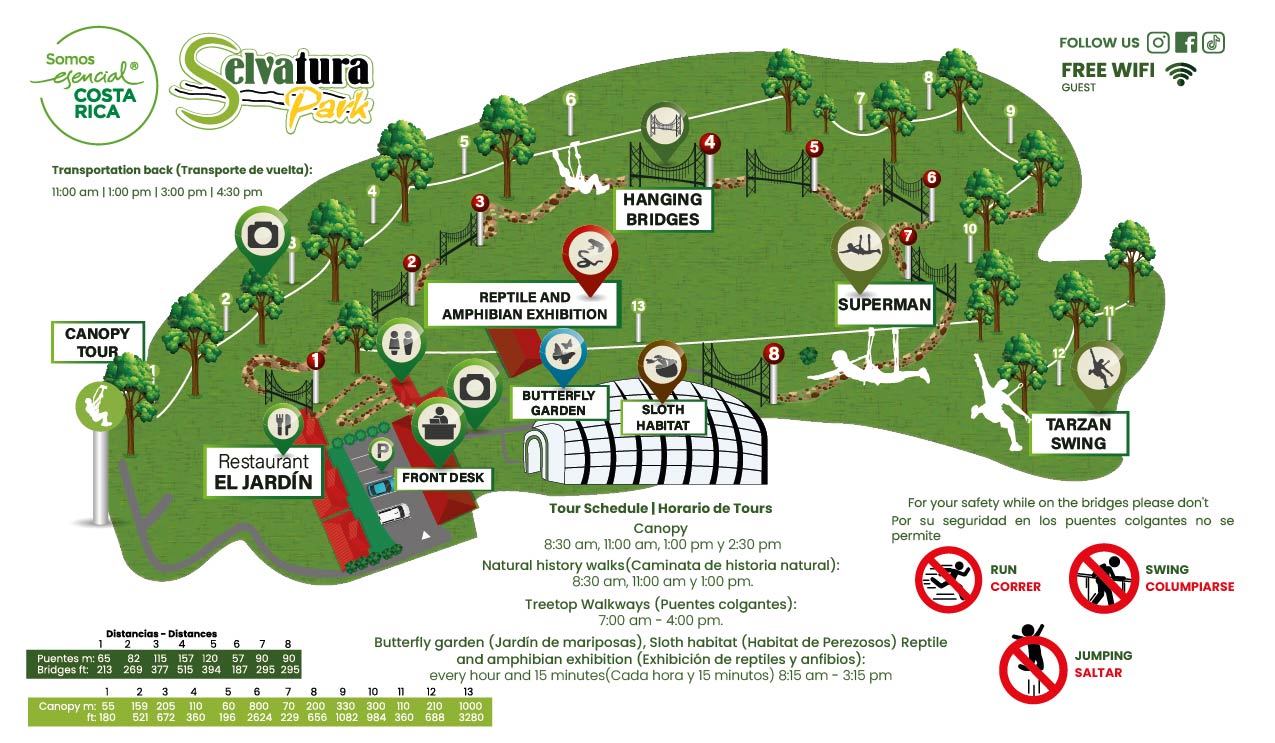 Nuestro mapa oficial muestra todas las atracciones del parque, senderos y puntos de interés. Ideal para incluir en paquetes turísticos, material impreso o aplicaciones de viaje. MapaInformación clara y lista para facilitar ventas o reservas. Descargue el PDF o solicite una versión personalizada. Descripción de ToursCada experiencia en Selvatura Park conecta a las personas con la naturaleza de forma segura y emocionante. Descargue las descripciones de nuestros tours.